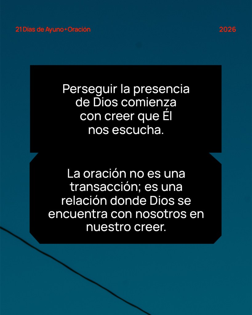 Perseguir la presencia de Dios comienza con creer que Él nos escucha. La oración no es una transacción; es una relación donde Dios se encuentra con nosotros en nuestro creer.