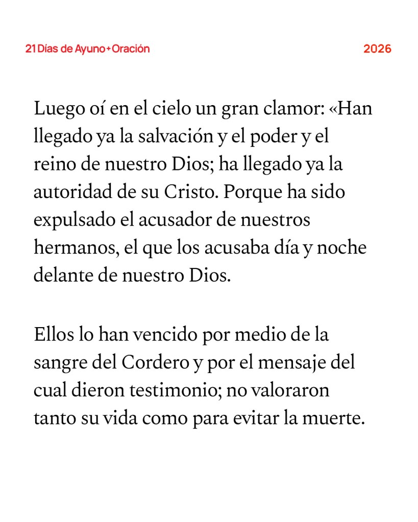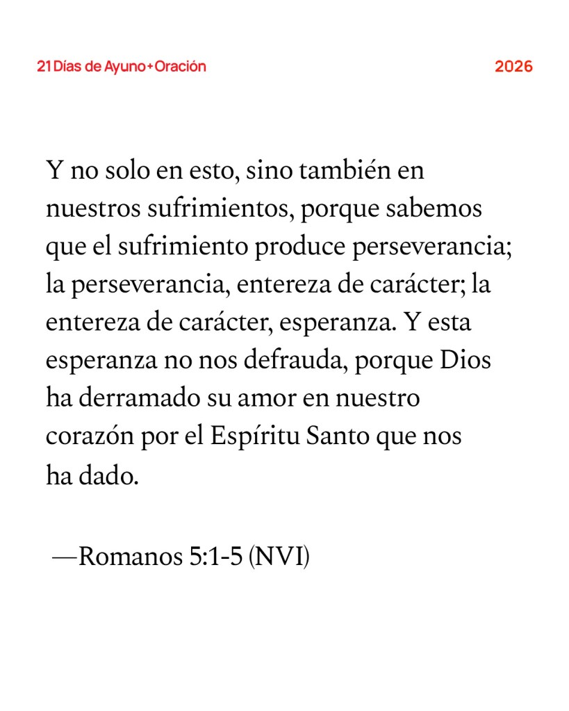 La verdadera fe no se define por lo que logra hoy, sino por su confianza en lo que está por venir. Hebreos 11 nos recuerda que muchos vivieron y murieron por fe sin recibir las promesas, porque “anhelaban una patria mejor, es decir, la celestial. Por lo tanto, Dios no se avergonzó de ser llamado su Dios y les preparó una ciudad” (Hebreos 11:16, NVI). Hoy, la iglesia está llamada a reflejar esa ciudad celestial—la comunidad de Dios formada no por sangre ni cultura, sino por la fe en Cristo. La cruz nos muestra cómo vivir: “Por el gozo que le esperaba, soportó la cruz, menospreciando la vergüenza” (Hebreos 12:2, NVI). Seguir a Jesús es morir a los valores terrenales y correr con perseverancia, fijando nuestra mirada en lo eterno. La fe nos impulsa a reflejar el carácter del reino de Dios en la Tierra. No estamos solos. “Estamos rodeados de una nube tan grande de testigos” (Hebreos 12:1, NVI). Perseveramos porque creemos, y creemos porque—aunque desde lejos—vemos la ciudad que Dios ha preparado. Incluso al concluir nuestros 21 días de oración juntos, nuestra fe sigue allanando el camino para quienes nos seguirán mañana. Que, cómo esa gran nube de testigos, estemos siempre dispuestos a perseverar con