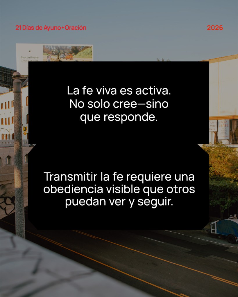 La fe viva es activa. No solo cree—sino que responde. Transmitir la fe requiere una obediencia visible que otros puedan ver y seguir.