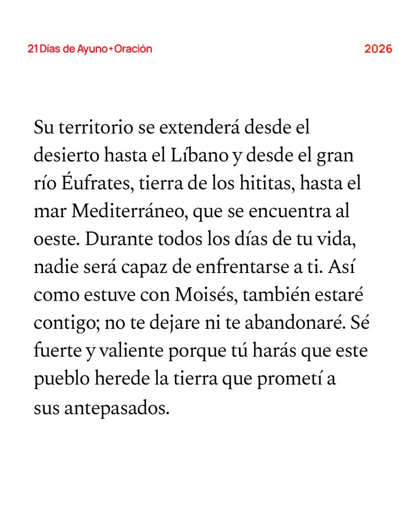Después de la muerte de Moisés, siervo del SEÑOR, el SEÑOR dijo a Josué, hijo de Nun, asistente de Moisés: «Mi siervo Moisés ha muerto. Por eso tú y todo este pueblo deberán prepararse para cruzar el río Jordán y entrar a la tierra que daré a los israelitas. Tal cómo prometí a Moisés, les entregaré a ustedes todo lugar que toquen sus pies. Su territorio se extenderá desde el desierto hasta el Líbano y desde el gran río Éufrates, tierra de los hititas, hasta el mar Mediterráneo, que se encuentra al oeste. Durante todos los días de tu vida, nadie será capaz de enfrentarse a ti. Así como estuve con Moisés, también estaré contigo;