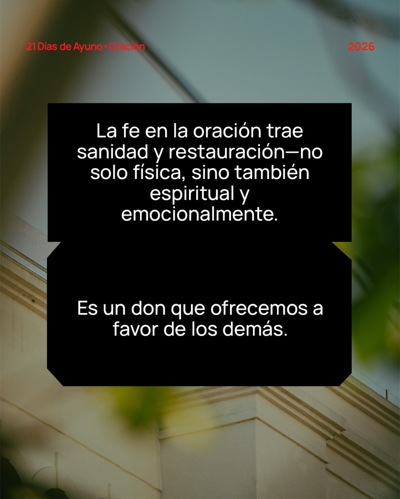 La fe en la oración trae sanidad y restauración—no solo física, sino también espiritual y emocionalmente. Es un don que ofrecemos a favor de los demás.